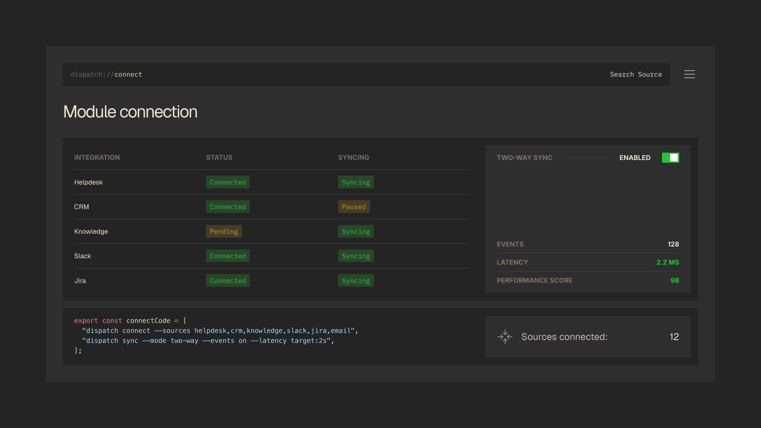 Most teams are up and running in under a day. Dispatch plugs into your existing stack through native integrations — no custom engineering or migration required.